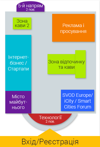 Конференція зазвичай проходить у декілька напрямів: чотири основних напрями з величезними залами і п'ятий додатковий, який охоплює всі супутні заходи, котрі відбуваються в невеликих конференц-залах одночасно з основними. Крім того, у виставковій зоні розташовуються стенди різноманітних компаній IT-галузі (якщо ви хочете розмістити стенд своєї компанії, надішліть нам запит на info@iforum.ua).